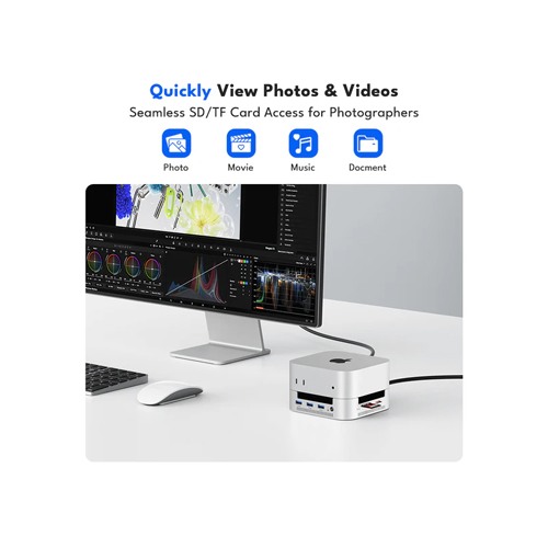 Experience the next generation of connectivity and performance with the Acasis M001Pro 40Gbps Mac Mini M4 Dock & Dual-Bay SSD Enclosure, designed exclusively for creative professionals, developers, and Mac enthusiasts who demand seamless speed and efficiency. This Acasis M001Pro 40Gbps Mac Mini Docking Station is the perfect fusion of power and versatility, offering an elegant design that complements your Mac Mini M4 setup while expanding its functionality to the fullest. With 40Gbps Thunderbolt 4/USB 4.0 compatibility, this Mac Mini M4 Pro Docking Station 40Gbps ensures lightning-fast data transfers, crystal-clear 4K@60Hz video output, and reliable power delivery ideal for multitasking, content creation, and high-speed data management. The Acasis M001Pro High-Speed SSD Dock for Mac Mini features a dual-bay SSD enclosure that supports both NVMe and SATA drives, allowing users to build up to 8TB of fast external storage, perfect for backups, media libraries, and editing projects. This 10-in-1 docking station includes multiple connectivity options HDMI, USB-A, USB-C, SD/TF card reader, Gigabit Ethernet, and an audio combo jack making it the ultimate productivity hub for your Mac Mini M4. The tool-free SSD installation and efficient aluminum alloy design ensure easy setup, excellent heat dissipation, and long-term durability. Whether you’re a designer, video editor, or data professional, the Acasis M001Pro 40Gbps Mac Mini M4 Dock | Best Price in BD delivers everything you need for a high-performance workspace. Enjoy plug-and-play convenience, superior speed, and sleek aesthetics all in one powerful docking solution. If you’re searching for the best Mac Mini M4 Docking Station 40Gbps in Bangladesh, IT SOURCE brings you the genuine Acasis M001Pro Dock with full warranty, after-sales support, and nationwide fast delivery.