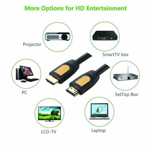 UGREEN 10170 HDMI Male To Male Cable its length is 10M. It Supports HDMI 2.0 standards with image resolution up to 4k@60Hz, Dolby TrueHD and DTS-HD Master Audio premium surround sound, incorporating HDCP compliant technology and Enabling 1080p video resolutions, and also it supporting next-generation displays that will compete with Digital Cinema systems used in many commercial cinemas. The Ugreen 10170 HDMI Cable is plated with 24K gold, for outstanding signal connection quality. Ugreen 10170 HDMI cable supports 3D for real 3D gaming. Adding high-speed HDMI network connectivity, This cable allows you to take advantage of IP-enabled devices over an HDMI cable. The Ugreen 10170 HDMI Cable Supports Full HD 1080p resolution, UHD 4K ultra-high resolution in new generation 4K TVs. Widespread application, compatible with any device that has an HDMI interface. Ideal for gaming or expanding workspace by connecting your device to a larger screen. Widely compatible with HDMI-enabled devices.