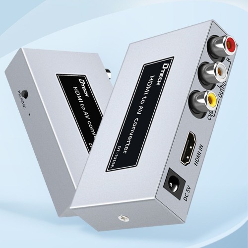 DTECH DT-7019A HDMI to AV high-definition converter can convert high-definition HDMI signal into AV (CVBS) composite video signal and FL/FR stereo audio signal, allowing customers to convert high-definition HDMI video signal into ordinary CVBS signal, support PAL /NTSC two different standards.