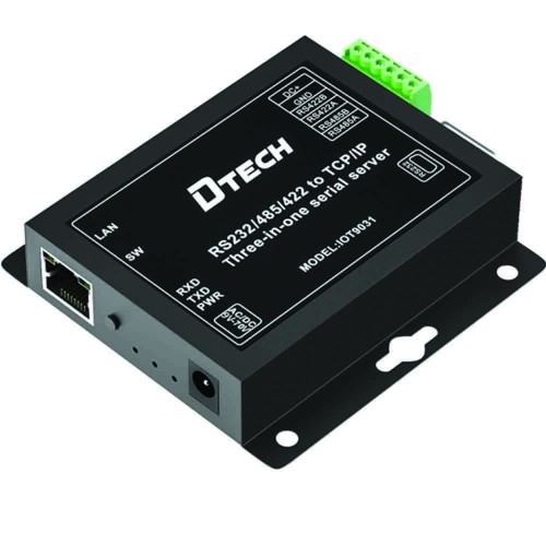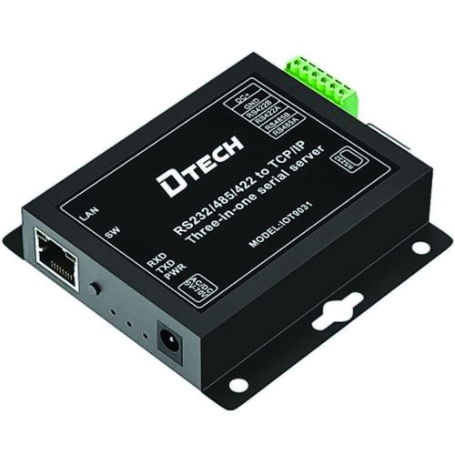 DTECH Serial Server RS232/422/485 to TCP IP Ethernet Serial Port to Network RS232/422/485 to TCP-IP Converter is a versatile and reliable device designed to bridge the gap between traditional serial communication protocols and modern TCP/IP Ethernet networks. With its seamless integration capabilities, this converter facilitates communication between serial devices and network-based systems, making it an essential component in industrial automation, telecommunications, and networking environments. Equipped with multiple serial interfaces including RS232, RS422, and RS485, the converter offers compatibility with a wide range of legacy and contemporary devices, such as industrial machinery, PLCs, barcode scanners, and sensors. This flexibility allows for effortless integration into diverse setups without the need for extensive hardware modifications or upgrades. The converter's primary function is to translate serial data streams into TCP/IP packets, enabling communication over Ethernet networks. By converting serial signals to TCP/IP, it extends the reach of serial devices beyond their physical limitations, facilitating remote monitoring, control, and management. This capability proves invaluable in scenarios where accessing or controlling serial equipment over long distances or across different locations is necessary. Featuring robust networking capabilities, the converter supports standard TCP/IP protocols, ensuring seamless interoperability with existing network infrastructure. It incorporates advanced networking features such as DHCP (Dynamic Host Configuration Protocol) support for automatic IP address assignment, making deployment and configuration hassle-free. Additionally, it offers web-based management interfaces for convenient setup and administration, allowing users to customize settings according to their specific requirements. Moreover, the DTECH Serial Server prioritizes data integrity and reliability, incorporating error detection and correction mechanisms to ensure accurate transmission of serial data over TCP/IP networks. With its rugged construction and industrial-grade design, the converter withstands harsh environmental conditions and operates reliably in demanding industrial settings. In summary, the DTECH Serial Server RS232/422/485 to TCP IP Ethernet Serial Port to Network RS232/422/485 to TCP-IP Converter provides a seamless and efficient solution for integrating serial devices into modern networked environments. Its versatility, reliability, and advanced features make it an indispensable tool for businesses seeking to modernize their infrastructure while preserving investment in legacy serial equipment.