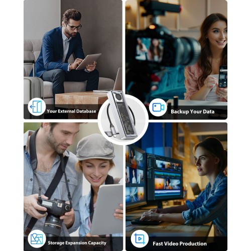 This enclosure is specifically designed for users needing high-speed data access for resource-intensive tasks like video editing, 3D rendering, and VR gaming. With a 0.3M Type-C cable for C-to-C and C-to-A connections, it easily integrates into most setups.