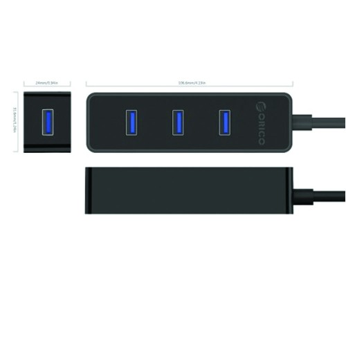 Orico W5PH4-U3-V1-BK-BP comes with 4 ports USB3.0 bus-powered hub, SuperSpeed USB3.0, built-in VL812 controller, Plug and plays, hot-swapping supported. It Expands 4 USB 3.0 ports from one of your computer’s USB ports easily. Fully functional under most operating systems including Windows XP, Windows Vista, Windows 7, Windows 8, Linux, and Mac IOS. The HUB is made from ABS (Acrylonitrile Butadiene Styrene) Engineering Plastic in black color ensuring greater impact resistance, strength, and stiffness. The unit measures 105mm in length, 33mm in width, and 24mm in thickness. In this HUB, Its Stylish and functional mini and compact design makes this perfect for travel. Plug-and-Play technology and no other driver or application are needed. In this HUB, The four output interfaces operating at USB3.0 (5Gbps) plus one output interface operating at USB3.0 using an A Male socket.