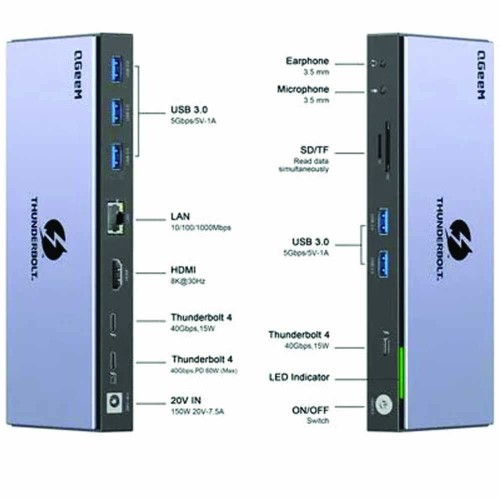 Upgrade your workspace with the QGEEM TB4 PRO 15-IN-1 Thunderbolt 4 Docking Station, the ultimate hub for professionals, creators, and tech enthusiasts. Designed to simplify connectivity, this powerhouse docking station transforms your laptop into a fully-equipped workstation in seconds. With 15 versatile ports, including multiple USB-C, USB-A, HDMI, DisplayPort, Ethernet, and SD card slots, it ensures seamless connection for all your devices, from high-speed storage drives to external monitors. Thunderbolt 4 technology guarantees blazing-fast data transfer up to 40Gbps, ultra-smooth 8K video output, and reliable power delivery to keep your laptop charged throughout the day. Compact yet robust, the QGEEM TB4 PRO combines cutting-edge design with practical functionality, eliminating cable clutter and boosting productivity. Whether you’re editing 4K videos, managing multiple screens, or handling intensive data tasks, this docking station delivers unmatched performance, making it an essential companion for any modern workstation.