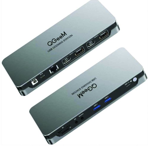 Qgeem USB-C Docking Station With Three High-Definition Video Output Ports: HDMI+HDMI+DP, But Only The Windows System Supports The Triple Display, Mac OS Is Not Supported. All Of 2 HDMI /1 DP Ports Can Directly Stream 4K UHD Or Full HD 1080P Video To HDTV, Monitors, Or Projectors For Multitasking, Viewing Spreadsheet Data, Editing Documents, Giving Presentations, Watching Movies And Playing Video Games. Make Your Tiny Laptop Desk Into A Wide, Multifunctional