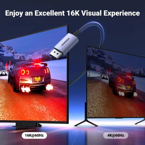 Experience unparalleled video and audio quality with the UGREEN DisplayPort Cable 2.1. This VESA Certified cable supports stunning resolutions of up to 16K@60Hz, making it perfect for high-end gaming and immersive media consumption.