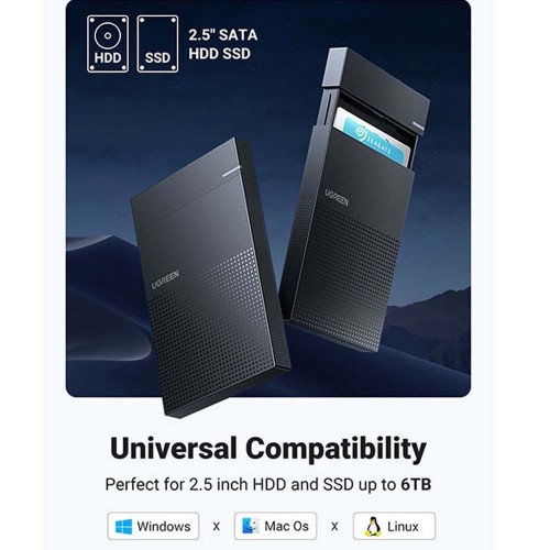The external hard drive enclosure is suitable for 7mm and 9.5mm 2.5 inch SATA III/ II/ I HDD SSD, compatible with Samsung Seagate WD Toshiba, etc. UGREEN computer hard drive enclosures can be quickly recognized by Windows 11/ 10/ 8.1/ 8/ 7/ Vista/ XP, Mac OS, Linux.