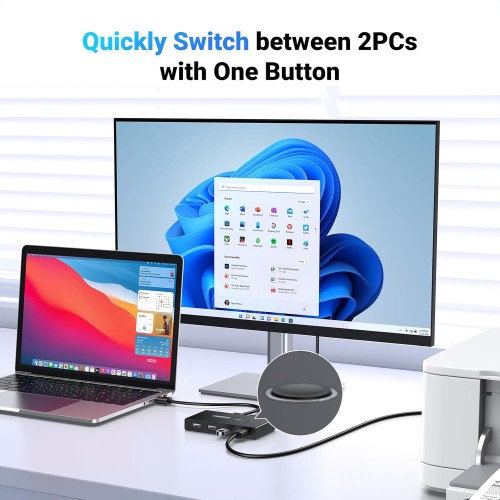 This switch improves productivity by allowing quick switching between systems without reconnecting devices. It saves time, reduces wear on USB ports, and keeps your workspace clean. It is especially useful for office workers, programmers, and home users who frequently switch between a work PC and a personal computer. Its compact size also makes it easy to integrate into any setup.