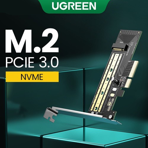Ugreen 70503 adds an M.2 PCIe SSD (M-Key) to your PCIe-equipped desktop computer (Windows 10, 8.x, 7, etc.) to significantly increase speed and performance. Compatible with PCI-e 3.0 motherboards, and is backward compatible with PCIe 2.0 and PCIe 1.0. The adapter supports PCIe 3.0 x4 NVMe (M Key) and PCIe AHCI M.2 SSD including 2230, 2242, 2260, and 2280 drives. Multi-layer protection like Overcurrent protection,Overvoltage protection,Short circuit protection,EMI (Electromagnetic Interference) protection. Maximum protection of M.2 NVMe SSD (Your valuable data) from electrical signal interference. No driver installation is required (if an exclamation mark appears after installing the adapter, ask the SSD manufacturer to offer the NVME driver for SSD for PCIe). Includes both flat and full profile brackets for installing flexible system chassis, ideal for 2U enclosures.