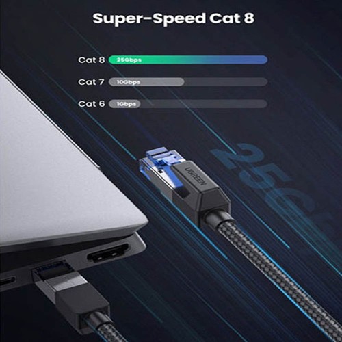 UGREEN CAT8 Ethernet RJ45 Cable 2M (80431), a high-performance networking solution designed to meet the demands of modern internet usage. This sleek black cable is not just aesthetically pleasing but also engineered for speed and reliability With a length of 2 meters, it offers flexibility in connectivity, making it ideal for both home and office setups. The cable supports lightning-fast data transfer rates of up to 40 Gbps, ensuring seamless streaming, gaming, and downloading without interruptions. Constructed with high-quality materials, the UGREEN CAT8 Ethernet cable features shielded twisted pairs that minimize interference, providing a stable connection even over longer distances. Its durable design ensures longevity, with a weight of only 133 grams, making it lightweight yet robust. The compact dimensions of 500 x 1 x 1 cm make it easy to manage and store, while the standard RJ45 connectors guarantee compatibility with a wide range of devices, including routers, switches, and gaming consoles. Upgrade your networking experience with the UGREEN CAT8 Ethernet RJ45 Cable, where speed, durability, and efficiency come together to deliver exceptional performance.