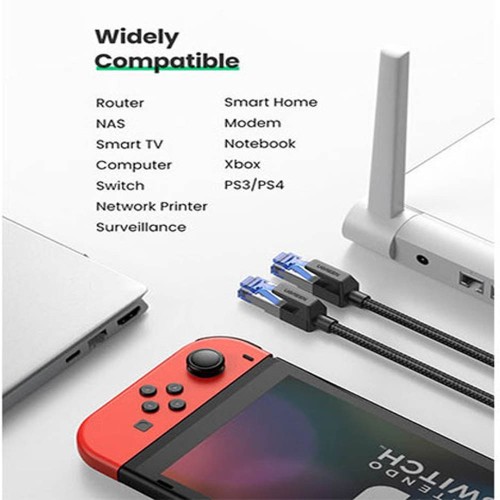 With the RJ45 Connector, UGREEN Gigabit Cat 8 ethernet cable can be perfectly compatible with computers, laptops, modems, routers, PS5, PS4, PS3, X-Box 360, X-Box One, Nintendo Switch, networking switches, ADSL, network adapters, hubs, and other networking devices. It can also be fully backward compatible with Cat7, Cat6e, Cat6, Cat5e, and Cat5.