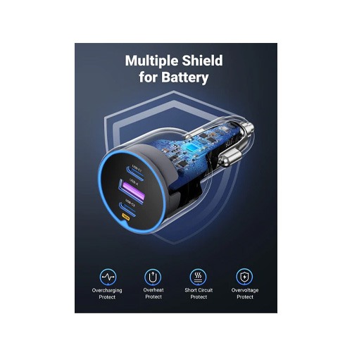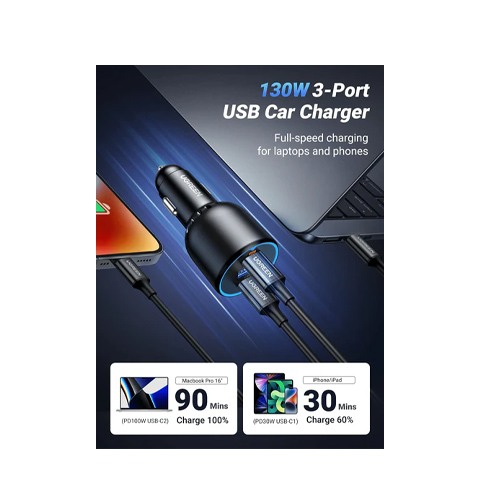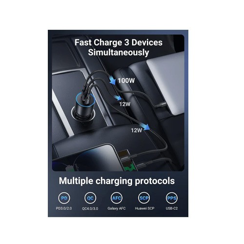 UGREEN CD293 130W USB-C Car Charger is a premium solution for powering all your devices on the go. Designed with advanced fast-charging technology, it delivers a maximum total output of 130W, ensuring your smartphones, tablets, laptops, and other devices stay charged efficiently during your journeys. Its versatile charging ports include USB-A, USB-C1, and USB-C2, each intelligently optimized for different power needs. The USB-A port supports up to 22.5W, USB-C1 up to 30W, and USB-C2 up to an impressive 100W, making it ideal for power-hungry devices like MacBooks or high-performance laptops. Built with a PC material body, the charger is both lightweight and durable, weighing only 48g, making it compact enough to fit seamlessly into your car without clutter. It supports 12-24V input, ensuring compatibility with most vehicles. With multiple safety protections, including overcurrent, overvoltage, and temperature control, the UGREEN CD293 guarantees safe and reliable charging every time. Its intelligent power distribution ensures each device gets the optimal charge, even when multiple devices are connected simultaneously. Whether commuting, road-tripping, or traveling long distances, the UGREEN CD293 130W Car Charger is the ultimate companion for staying powered up. Experience convenience, speed, and safety in one compact device, keeping all your gadgets ready whenever you need them.