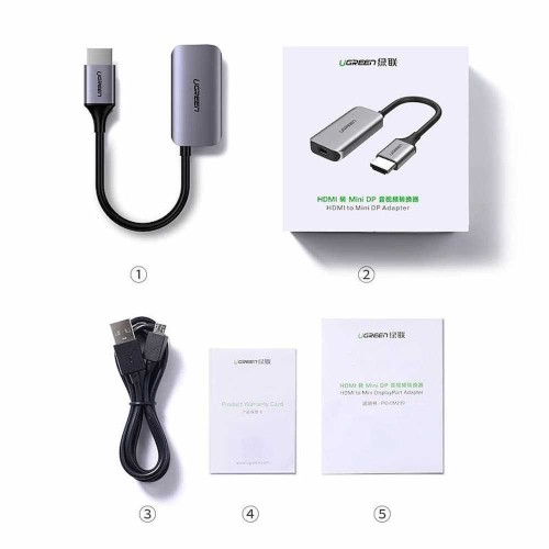 Ugreen 60352 HDMI to Mini Displayport converter allows you to connect HDMI-enabled devices such as desktop computers, laptops, etc. to a large screen with a Mini Displayport port. Ugreen 60352 supports resolutions: UHD 4K (3840x2160) @ 30Hz, 1080P (1920x1080) @ 120Hz and 7.1 sound, bringing you an immersive visual and audio experience. The product comes with a Micro USB cable that supports 5V power for better signal transmission. The UGREEN HDMI to Mini DP Converter CM239 (60352) is plug-and-play, so you don't need to install any drivers or software to use it. Simply connect the converter to your HDMI source and Mini DisplayPort display using the included cables and you're ready to go.
