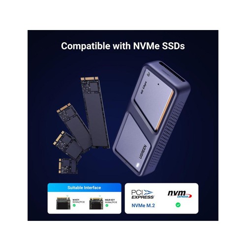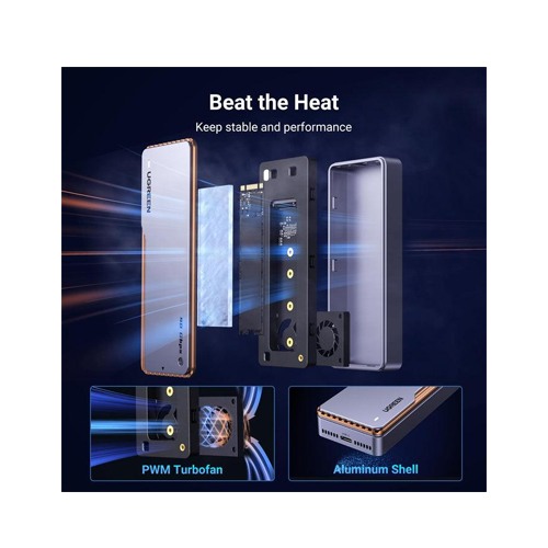 UGREEN CM642 40Gbps with Cooling Fan Hard Drive Enclosure, an advanced and high-performance storage solution designed to provide fast data transfer speeds and efficient cooling for your hard drives. With its robust design, impressive data transfer capabilities, and built-in cooling fan, this enclosure is perfect for users who require reliable and high-speed external storage. The UGREEN CM642 is equipped with a cutting-edge USB 3.1 Gen 2 interface, offering lightning-fast data transfer speeds of up to 40Gbps. This allows you to transfer large files, videos, and other data in seconds, significantly reducing waiting times and increasing productivity. Whether you're a content creator, gamer, or professional, this enclosure provides the speed and performance you need for your storage requirements. To ensure optimal performance and longevity of your hard drives, the CM642 features a built-in cooling fan. This cooling fan effectively dissipates heat, preventing overheating and ensuring the stability and reliability of your drives during prolonged and intensive use. With its efficient cooling system, this enclosure is perfect for users who require continuous and uninterrupted access to their data. The CM642 is compatible with various hard drive sizes, including 2.5-inch and 3.5-inch SATA hard drives and solid-state drives (SSDs). This versatility allows you to use a wide range of storage options, from high-capacity hard drives for storing large media files to speedy SSDs for quick access to your data. With support for up to 16TB of storage, the CM642 provides ample space for all your files and media. Installation is a breeze with the CM642. Simply slide your hard drive into the enclosure and secure it with the included screws. The enclosure supports hot-swapping, allowing you to easily swap out drives without the need for restarting your computer. The plug-and-play functionality ensures that you can start using your external storage immediately, without the hassle of installing additional drivers or software. The CM642 is designed with durability and reliability in mind. Its solid aluminum construction provides excellent protection for your hard drives, while also dissipating heat effectively. The sleek and compact design of the enclosure allows it to blend seamlessly into any workspace or setup, making it a stylish and functional addition to your computer peripherals. Upgrade your external storage experience with the UGREEN CM642 40Gbps with Cooling Fan Hard Drive Enclosure. Enjoy lightning-fast data transfer speeds, efficient cooling, and a durable design that ensures the safety and reliability of your hard drives. Expand your storage capacity and experience the convenience of high-speed external storage with the CM642.