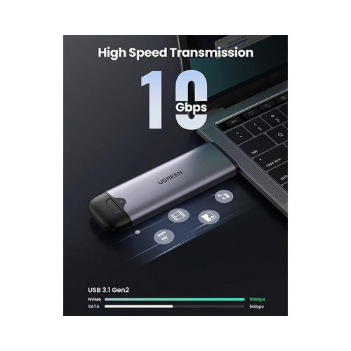 UGREEN M.2 SATA/NVME Hard Drive Enclosure CM353 (70532) is a powerful and versatile external storage solution designed for users looking to enhance their data transfer experience. With its 2-in-1 USB-C and USB-A ports, this enclosure offers exceptional flexibility, ensuring compatibility with a wide range of devices, whether it's your laptop, PC, or other USB-supported gadgets. This dual-port setup allows you to seamlessly connect your M.2 SSD to both USB-C and traditional USB-A ports, making it perfect for various types of systems. One of the standout features of the UGREEN M.2 enclosure is its 10Gbps ultra-fast transmission speed, ensuring that data transfer is swift and efficient. This makes it an ideal choice for users who require high-speed performance, such as video editors, gamers, and tech enthusiasts who work with large files. Whether you're transferring 4K videos, heavy applications, or important documents, this enclosure ensures minimal delay and maximum performance. The UGREEN CM353 (70532) supports M and B&M keys and is compatible with SSD sizes 2242/2280, offering broad support for various types of M.2 drives. It is designed to accommodate both SATA and NVME SSDs, providing exceptional versatility for different storage needs With a user-friendly design, this enclosure is easy to set up, requiring no additional software or drivers. The tool-free assembly makes it hassle-free for anyone to insert their SSD and get started right away. Additionally, it’s highly universal compatible, working with both Windows and macOS systems, so you can use it across multiple platforms without any issues. In conclusion, the UGREEN M.2 SATA/NVME Hard Drive Enclosure CM353 (70532) is an excellent choice for anyone looking to upgrade their external storage solution with high-speed performance, broad compatibility, and user-friendly design.