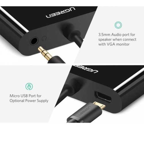 The UGREEN 30355 HDMI to VGA Converter seamlessly bridges modern and legacy technologies, enabling the smooth transmission of high-definition content from HDMI-equipped devices to VGA displays. This compact and versatile adapter ensures a reliable and clear signal transfer, supporting resolutions up to 1080p. Its plug-and-play design eliminates the need for additional drivers, making it user-friendly for various applications such as presentations, conferences, or home entertainment. The durable construction and thoughtful design by UGREEN guarantee a dependable solution for users seeking to connect HDMI sources to VGA monitors, projectors, or other analog displays with ease and efficiency.