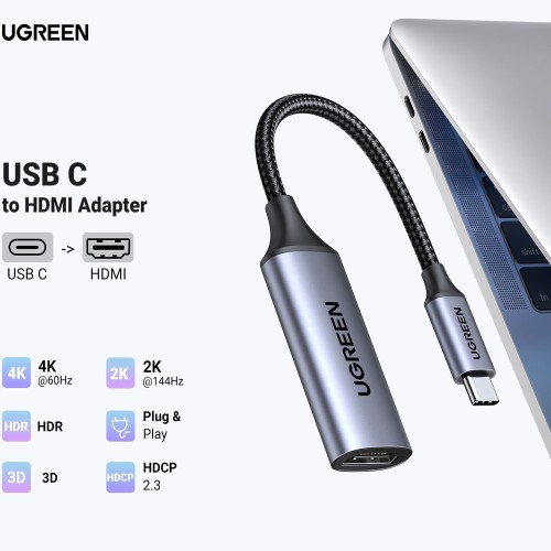 UGREEN Type C To HDMI CABLE 70444 is designed for the connection between your type C PC or smartphones such as iMac 2017, Macbook, or Samsung S8 to an existing HDTV, display monitor, or projector with HDMI port.