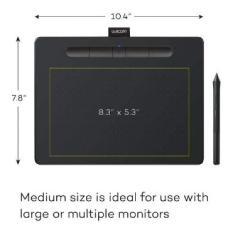 Medium sized art tablet features a slim design, compact footprint and a larger drawing area (8.5 x 5.3”) – ideal for use with large or multiple monitors