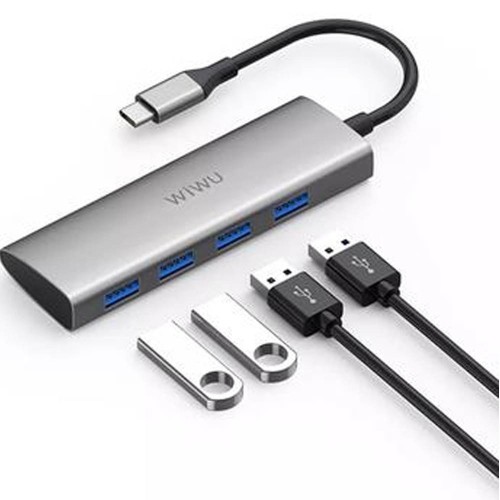 The WIWU A440 Alpha 4-in-1 USB Type-C Docking Station is the perfect solution for expanding your device's connectivity. It turns one USB-C port into four USB 3.0 ports, allowing for quick data transfer and charging capabilities. This hub is ideal for connecting devices such as U disks, mobile hard drives, keyboards, and mice—all in a compact, aluminum-coated design that’s easy to carry.